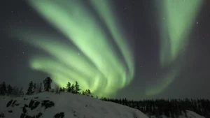 イエローナイフで夏のオーロラ!?湖面に映るダブルオーロラが眺められるのは夏だけ。滞在中に一度、車でオーロラを追いかけるオーロラハンティング付き!