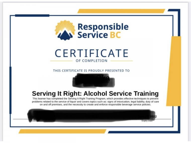 ウィスラーのあるカナダのブリティッシュコロンビア州では、アルコールを提供する仕事(ウェイトレス、バーテンダーなど)で働く際には「Serving It Right」という資格の取得が必要となっています。 この資格はお酒の提供によって起こりえるトラブルを防ぐためにあつもので、提供時の法的責任、注意義務、