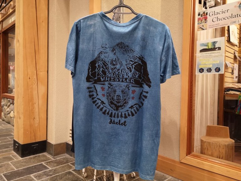 ジャパナダのショップにこれからの季節にピッタリな、さわやかな藍染ブルーのTシャツが入荷しました。Tシャツのデザインはウィスラーの人気アーティストJACLOT。山とスキー場、熊やリスなどウィスラーがぎゅっと詰まったイラストがプリントされています。 藍染でオンリーワンのTシャツに 一枚一枚アーティスト自