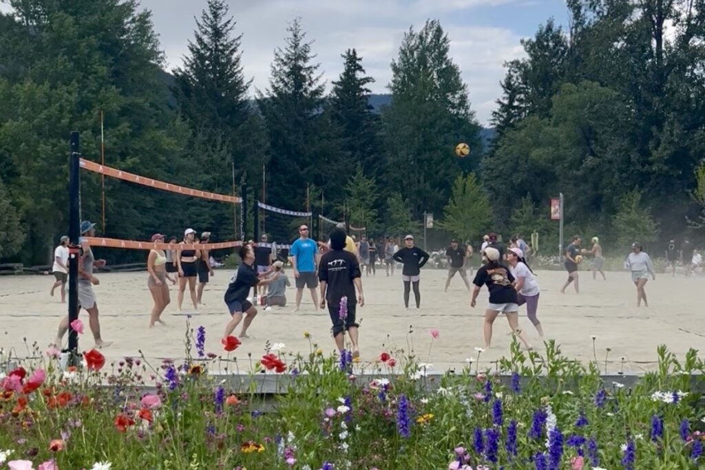 「レインボーパーク」(無料シャトルバス有)という公園があり、湖畔でお花も咲いている綺麗な場所には、自由に利用できるビーチバレーコート4面もあり、ここで、毎週ビーチバレーのリーグが行われています。