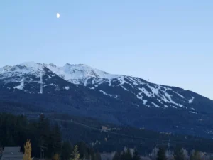 ウィスラーブラッコムスキー場の25-26シーズンのオープンは11月21日を予定していますが、今のところ順調に積雪が増えているようです。 10月中旬からウィスラーでは徐々に気温が下がり、麓では冷たい雨、山上部降雪という日が続いています。上の写真は、束の間の晴れ間が見えた10月30日夕方のブラッコム山の