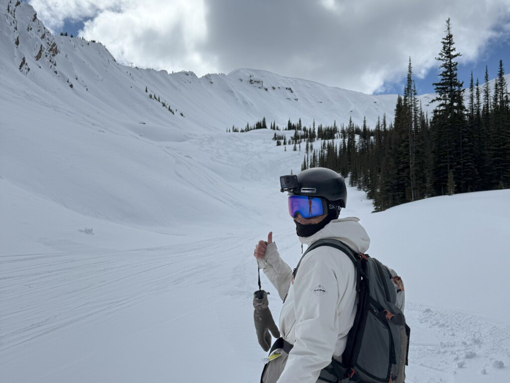 キッキングホースと比べるとコースの選択肢が幅広く、中級〜上級者が一日中楽しめる懐の深さが魅力です。ファーニーでは、山頂近くにあるポーラーピークリフトに挑戦してみたのですが、これがなかなかオープンしないとのこと。ローカルでもシーズン中に一度も乗れないことがあるそうで、もし乗れたらかなりレアでラッキーです。今回はハイシーズンの雪質を体験することはできなかったのですが、次回はぜひ真冬のパウダーを狙ってみたいと思いました。