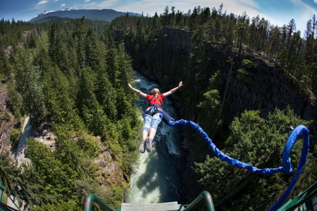 ニュージーランドやオーストラリアではよく耳にするバンジージャンプが、ウィスラーでも楽しめます。50mの落差をチャカムス川に向かってジャンプ!