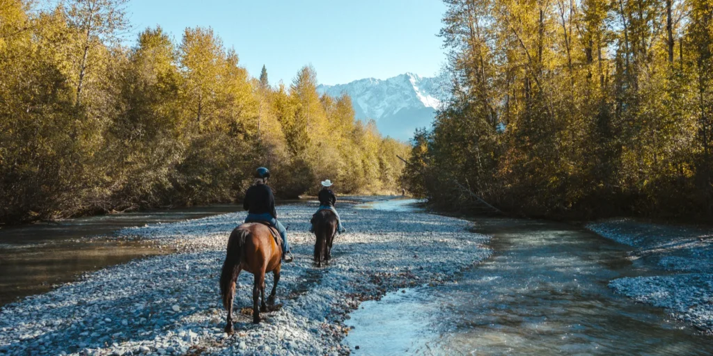隣町ペンバートンに広がる、カナダらしい牧歌的な風景の中のトレイルでお楽しみいただける乗馬ツアー(外乗)です。
