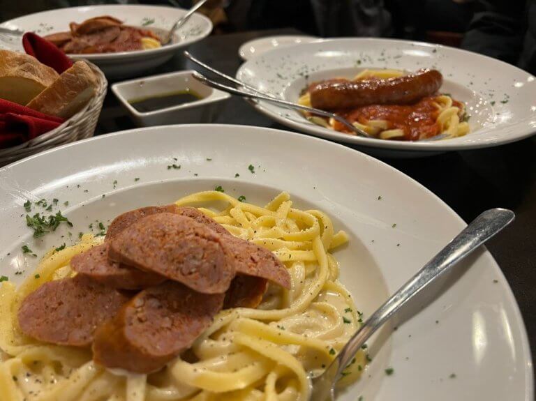 ウィスラーでは、メキシカン、フレンチ、日本食、タイなど、北米以外の様々な国の料理が食べられるレストランがあります。その中でも本格的なイタリアンパスタを食べれるのが「Pasta Lupino」です。ビレッジ内のメインの歩行者通りから道路側に出たところに、いくつかのレストランが並んでいる通りにあるレスト