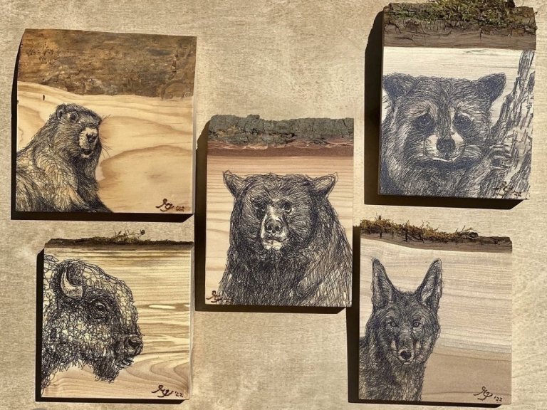 新しいアート作品が入荷致しました!「Michaela Ivancova」さんによる、木にカナダらしい可愛い動物がプリントされている作品です。 彼女は、スロバキアの大学で芸術を専攻し、さらにアートの世界観を広げるために2つの大学に通いました。ウィスラーに来て自然や動物に触れ、今の作品にたどり着いたそう