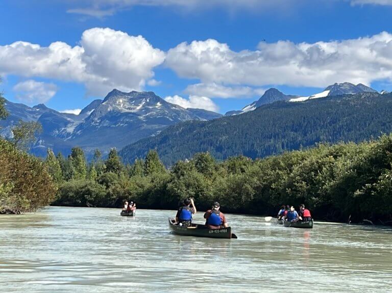 ウィスラーの夏は、湖や川でカヌーやカヤックでのパドリングが人気です。自前のカヌーなどのボートを持ってきてはウィスラーの湖にあるビーチからパドルしたり、湖畔には個人用のドックがある家が建っていたりするほどです。そんな夏のある日、友人グループに誘われウィスラーから少し離れたところにある川でカヌーをするこ